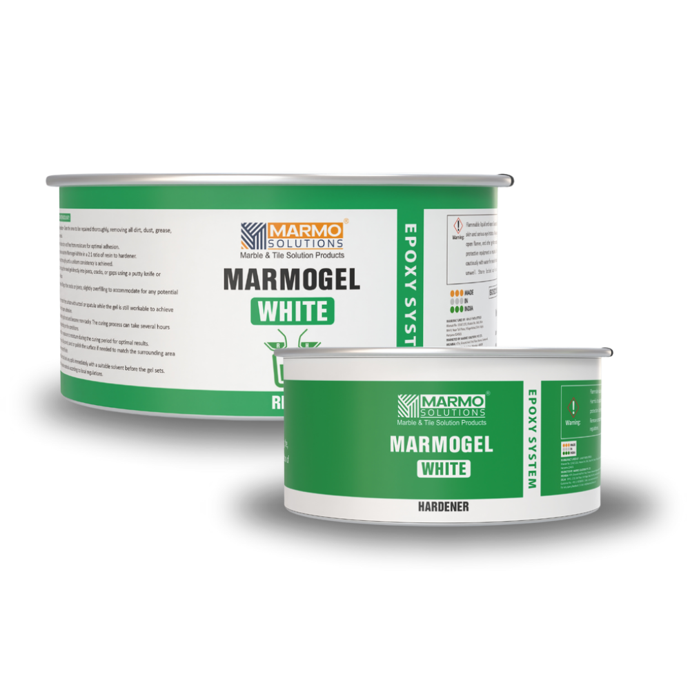 MARMOGEL-WHITE 2:1 A solvent-free epoxy adhesive specially formulated for light-coloured stones. Its gel-like consistency ensures high creep strength, delivering strong, durable, and seamless bonding for natural and artificial stones.