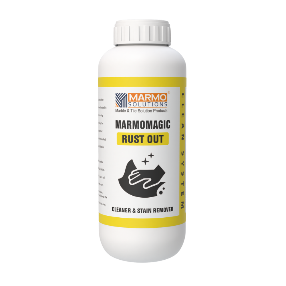 MARMOMAGIC-RUST OUT is a ready-touse solution designed to remove deep-set rust stains from marble surfaces. It effectively dissolves rust, turning it into a purple color, indicating its reaction. After treatment, clean the surface with distilled water to remove any residual purple marks, restoring the stone’s natural beauty.